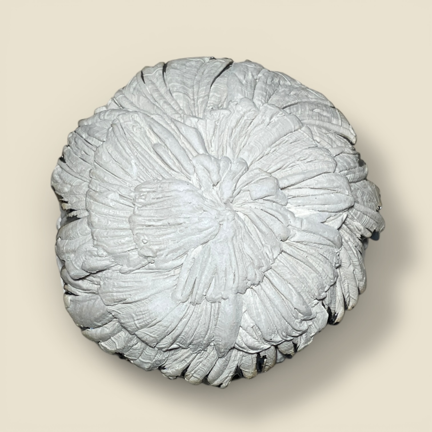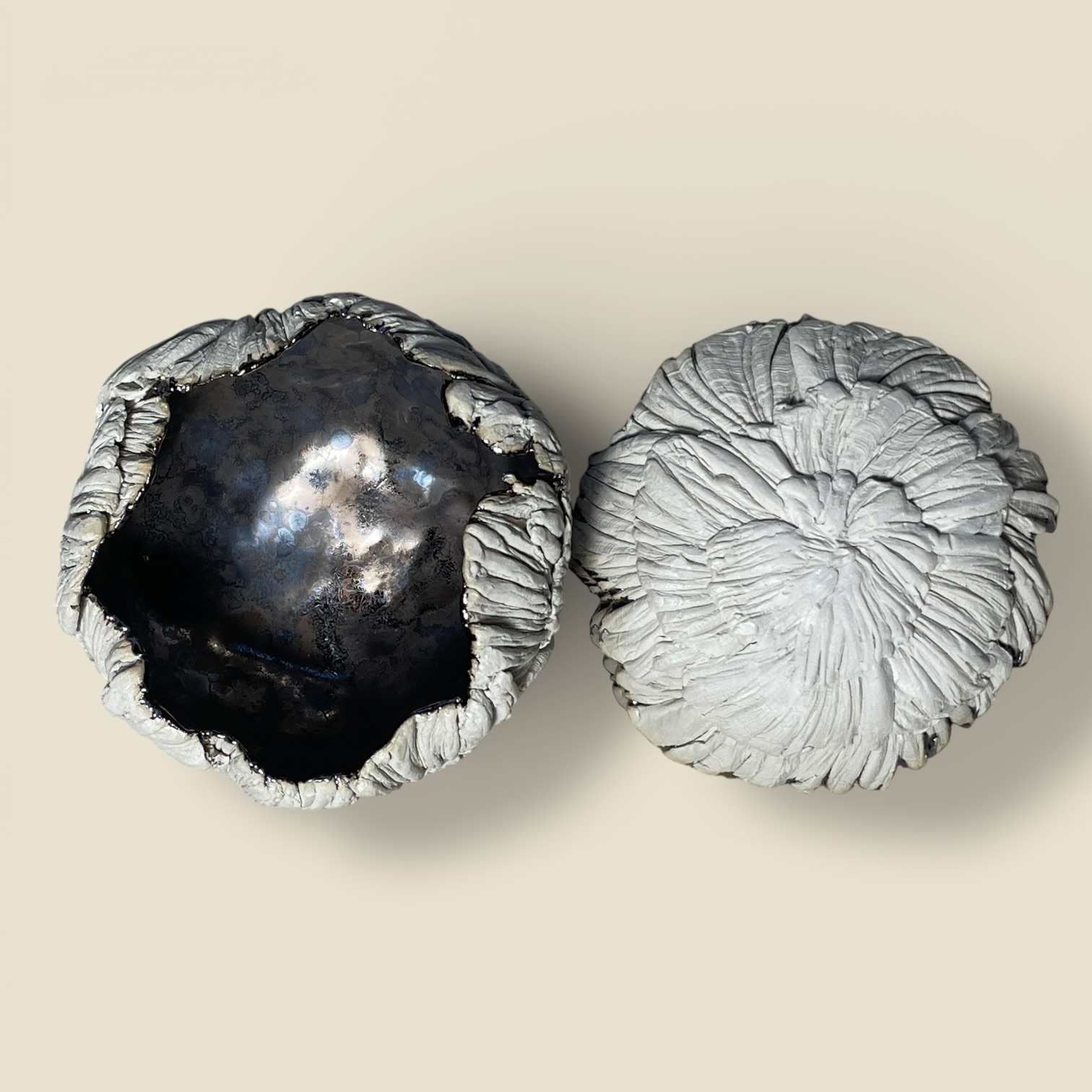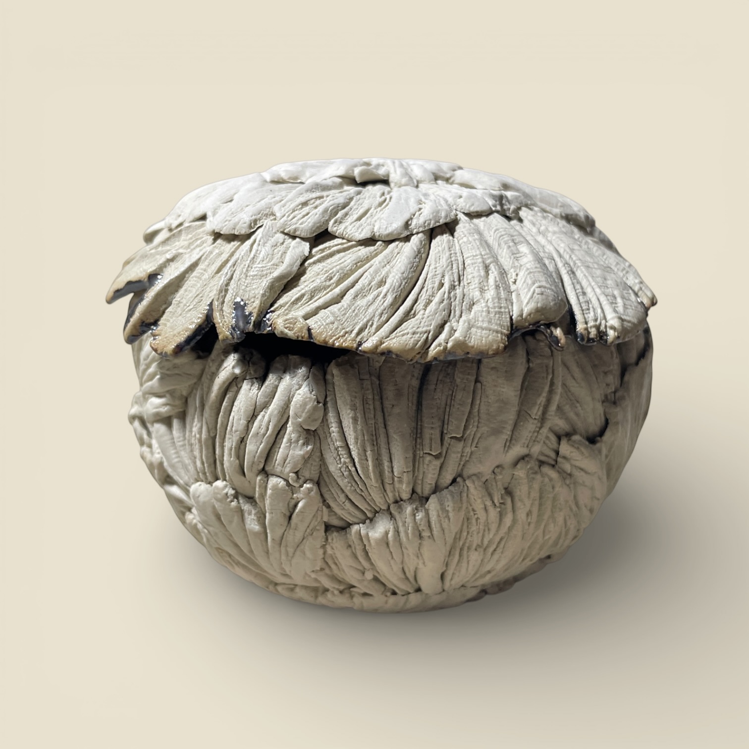 En grès émaillée, avec une fleur centrale sur le couvercle