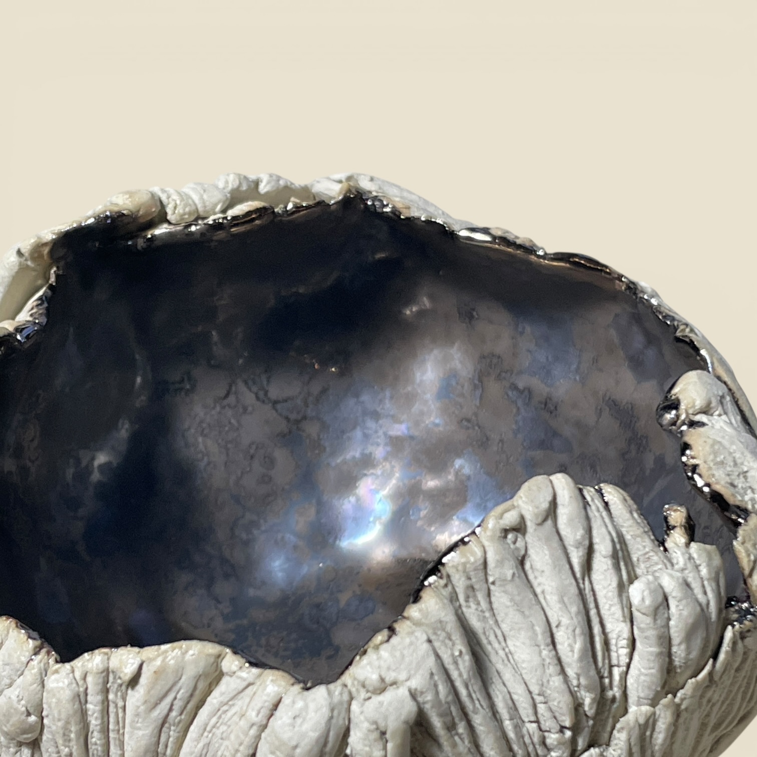 En grès brut à l’extérieur, émaillé à l’intérieur