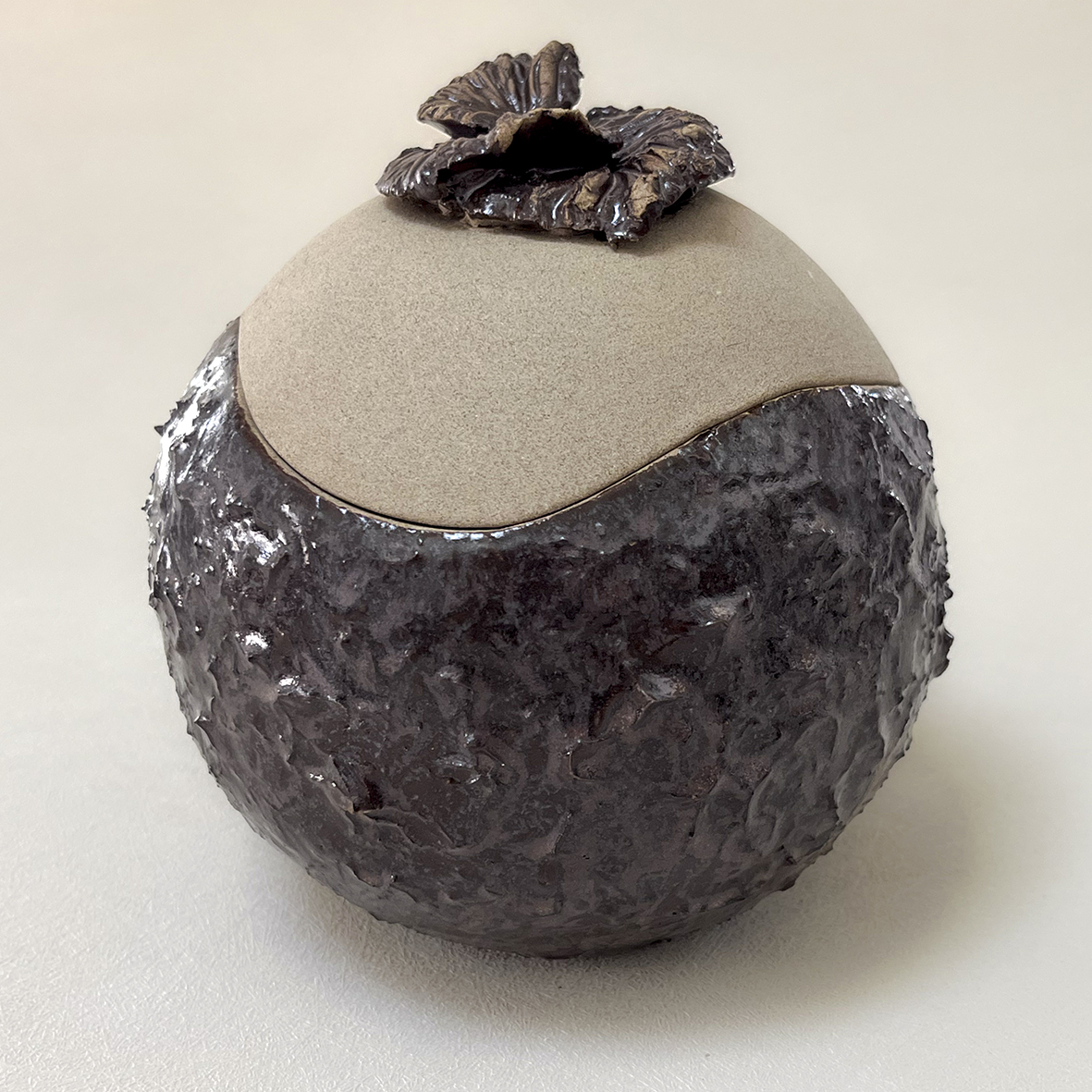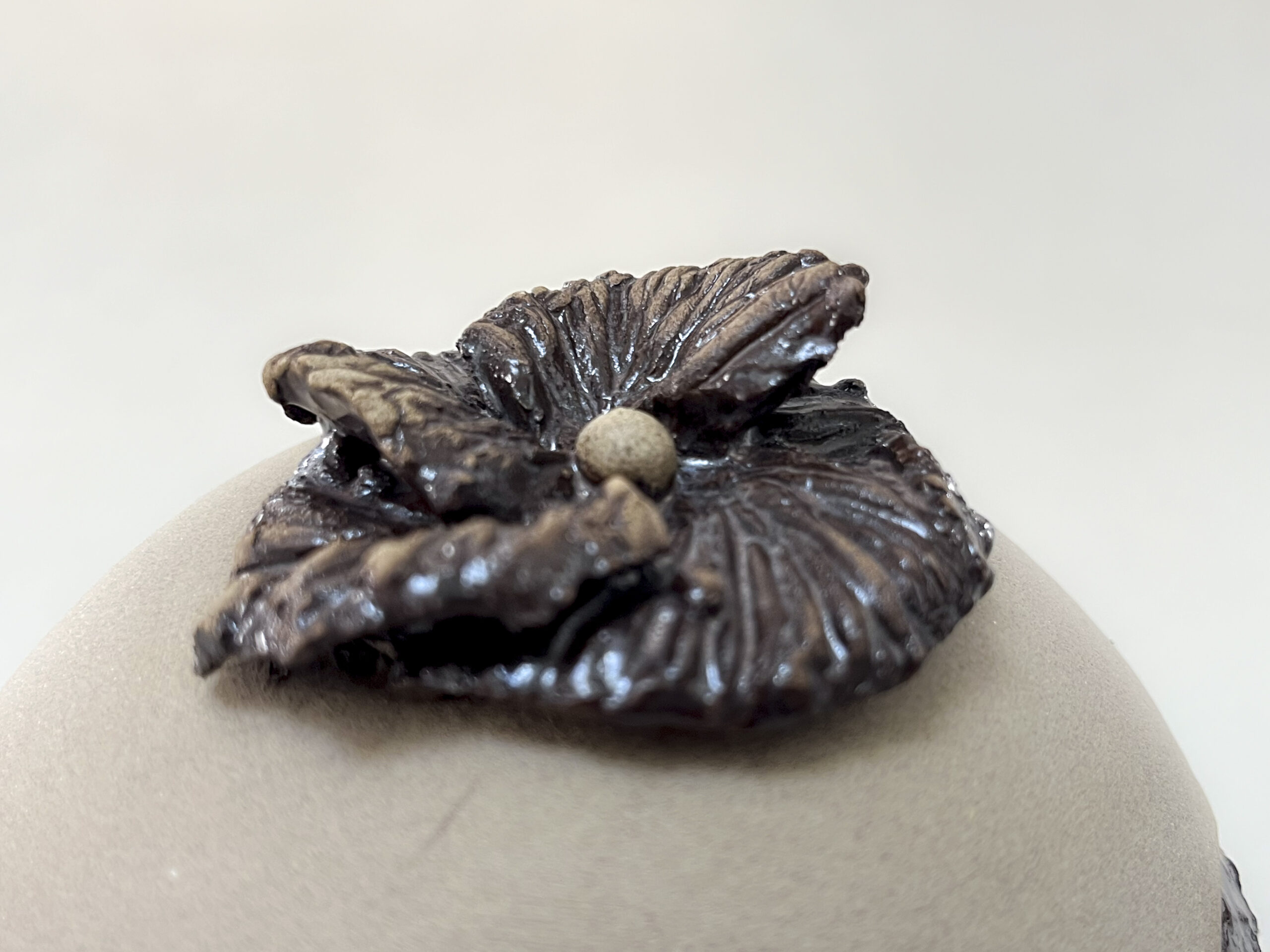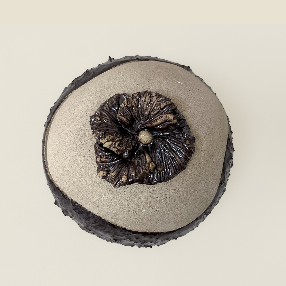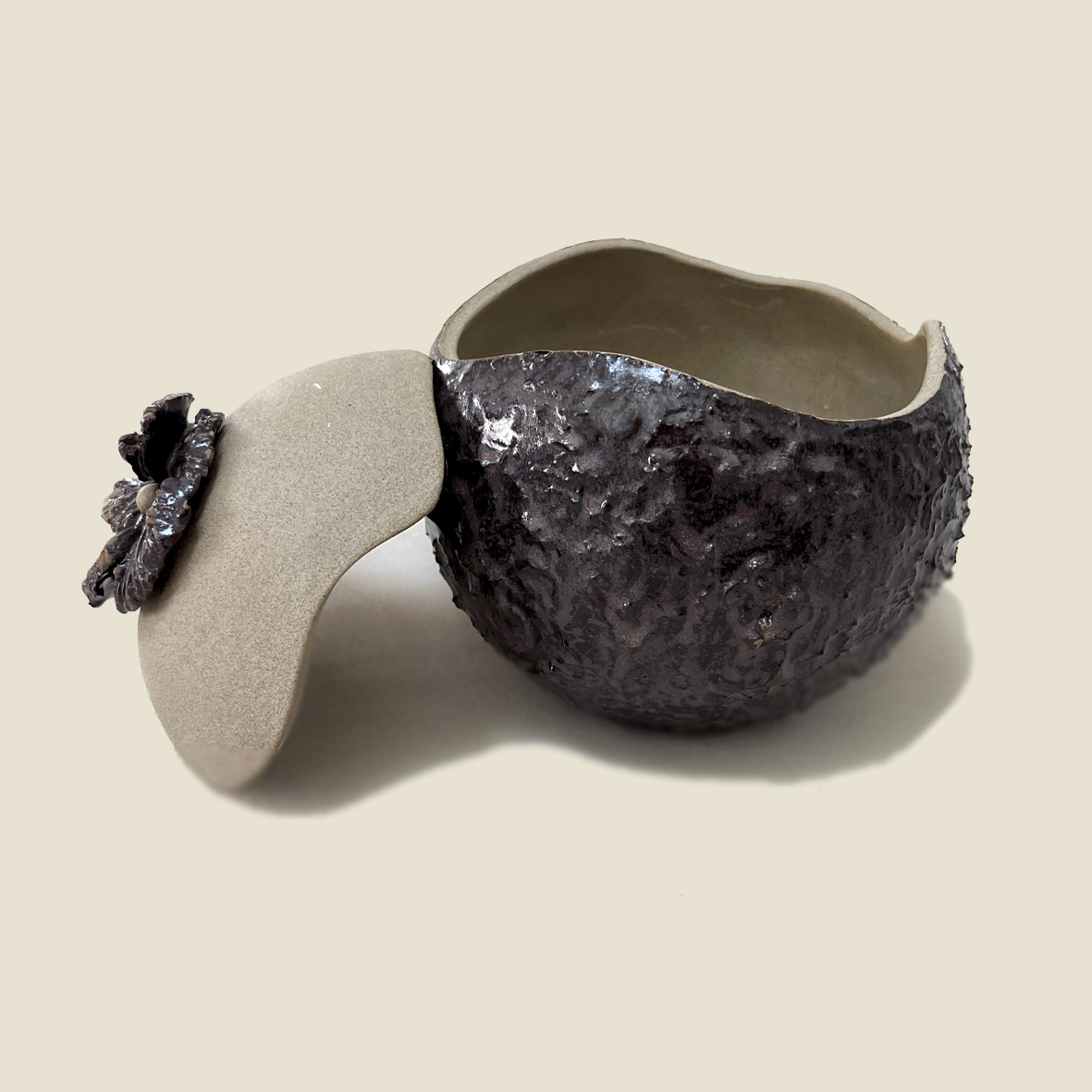 En grès émaillée, avec une fleur centrale sur le couvercle