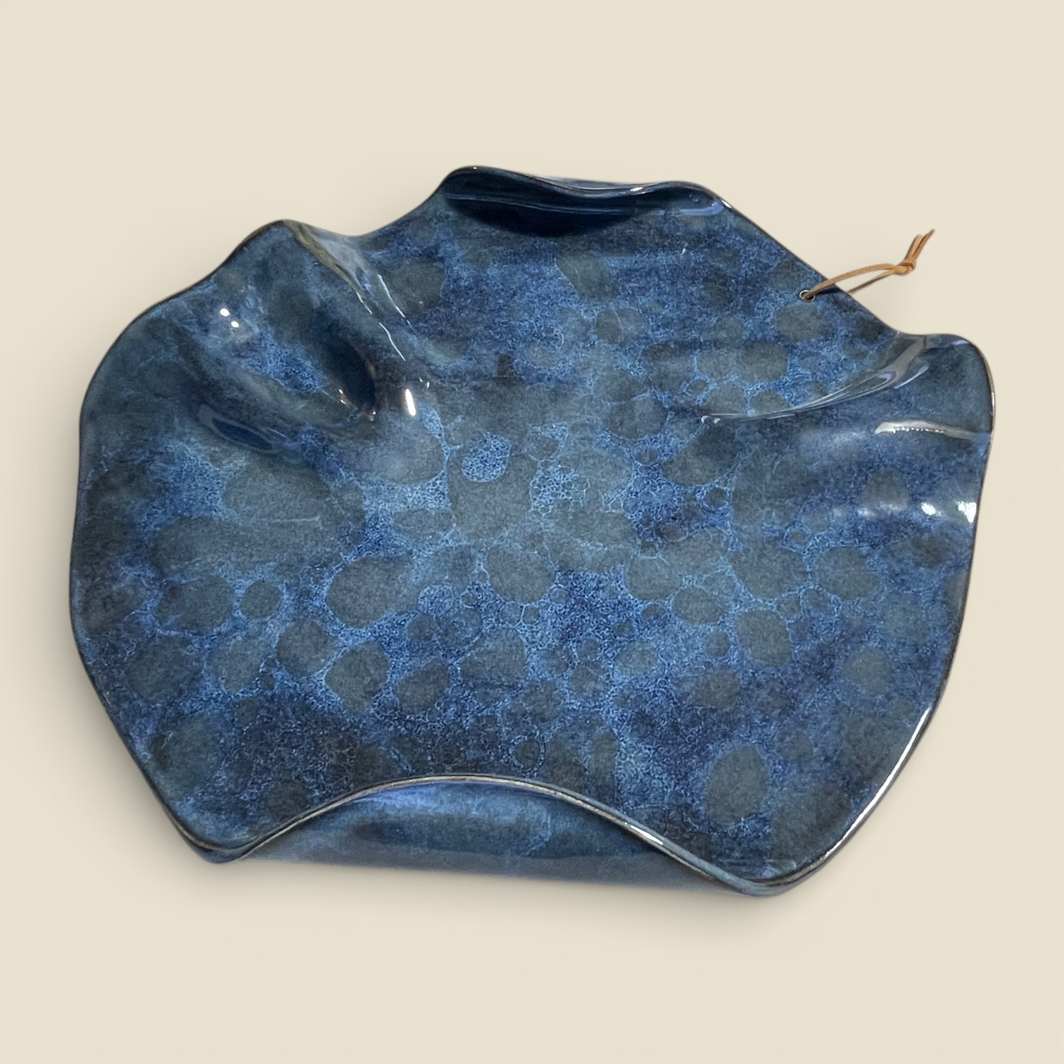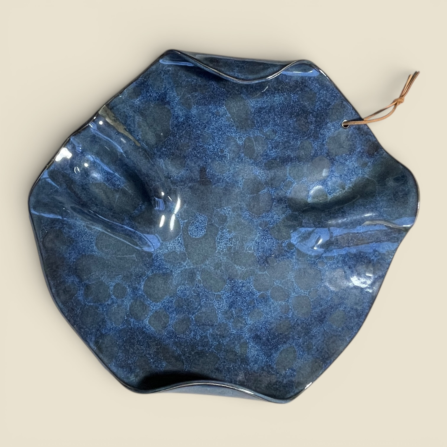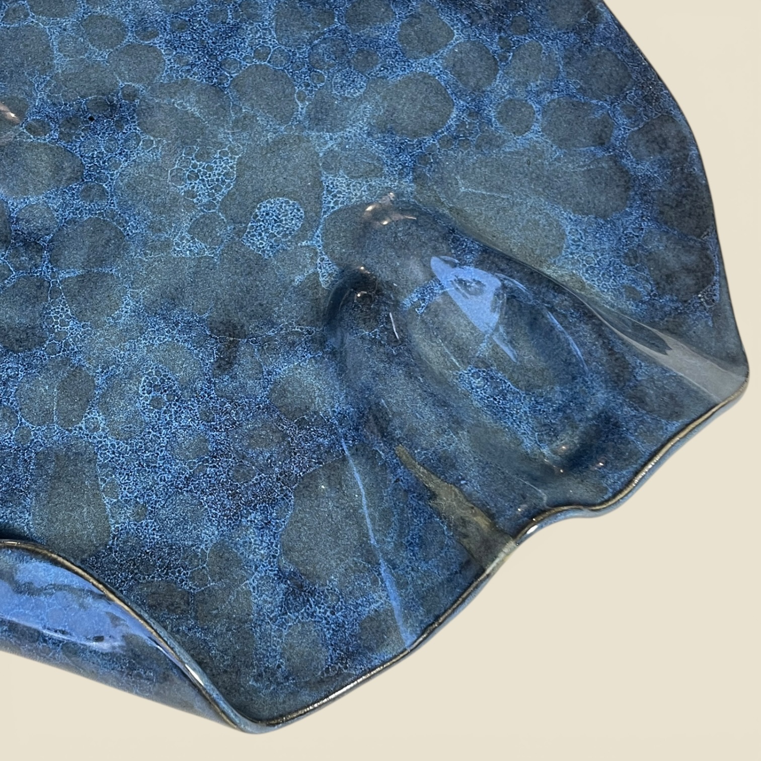 Plat de présentation de la collection « Écume » pour l’apéritif, les tapas ou le fromage. Émail bleu profond / écume bleue.