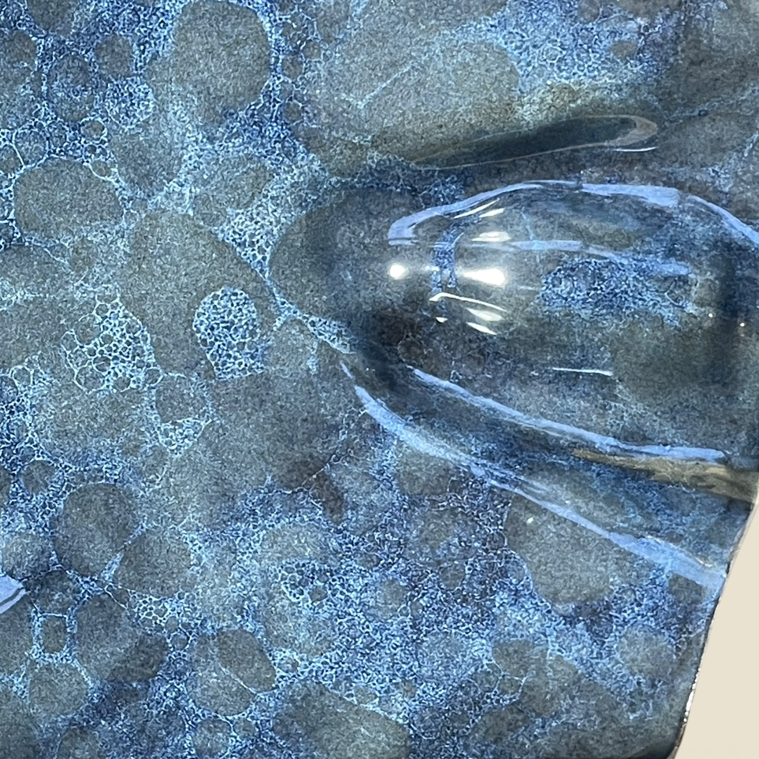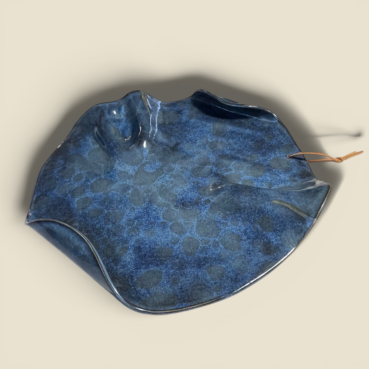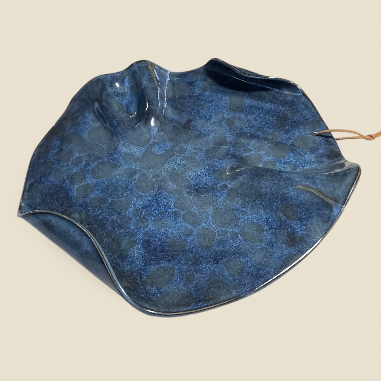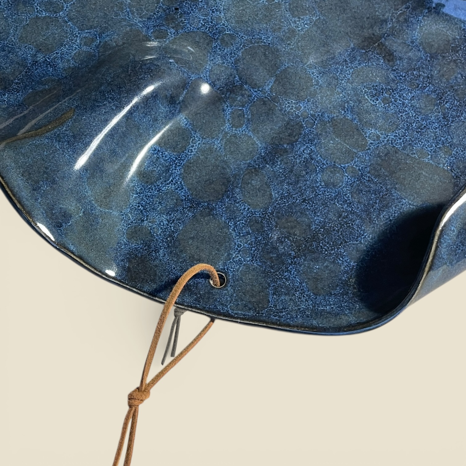 Plat de présentation de la collection « Écume » pour l’apéritif, les tapas ou le fromage. Émail bleu profond / écume bleue.