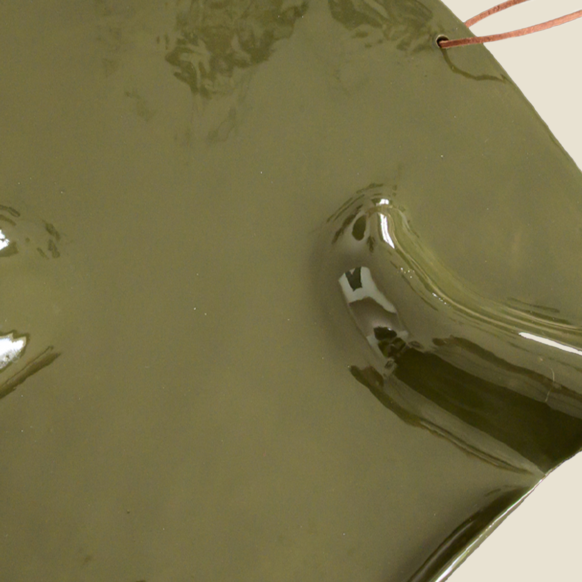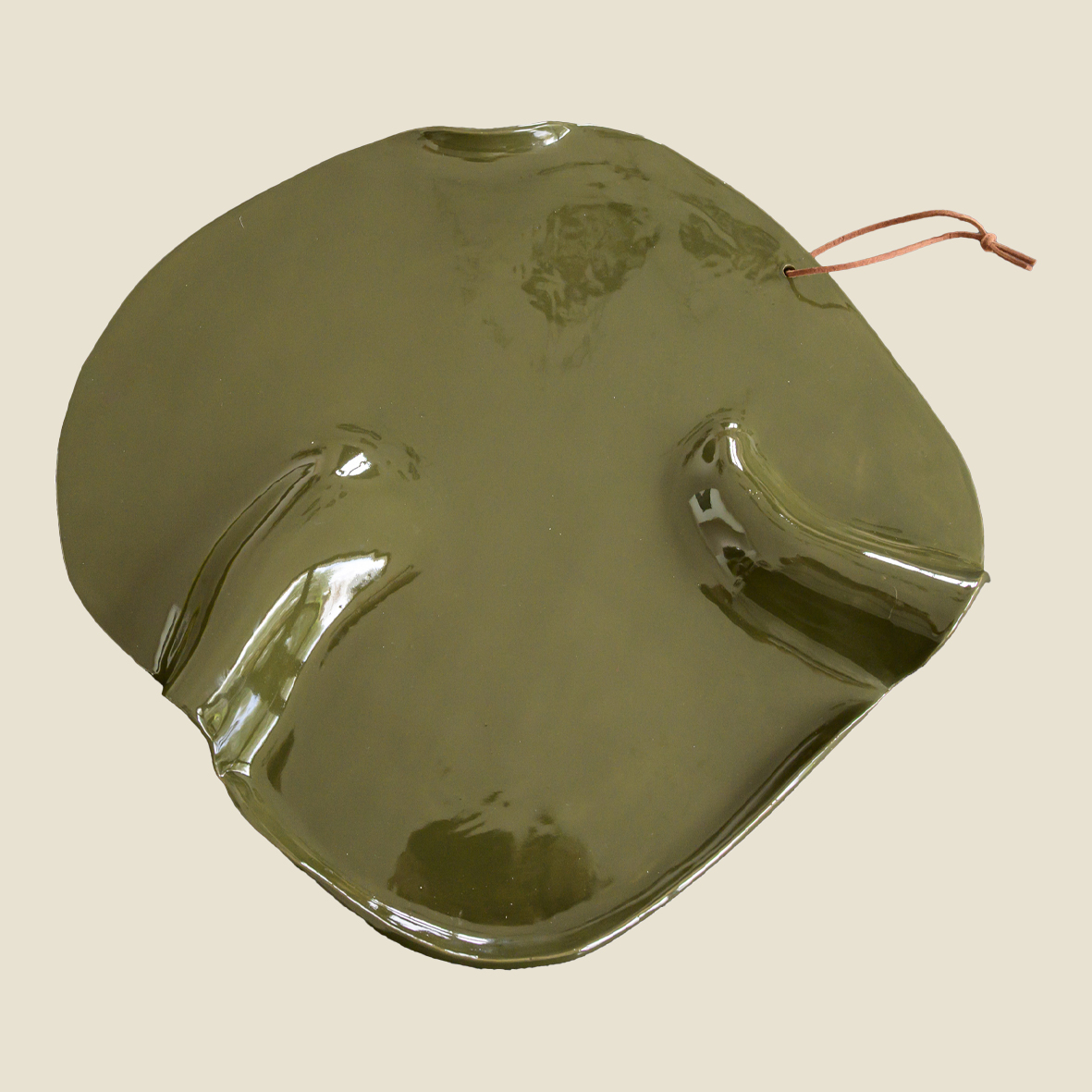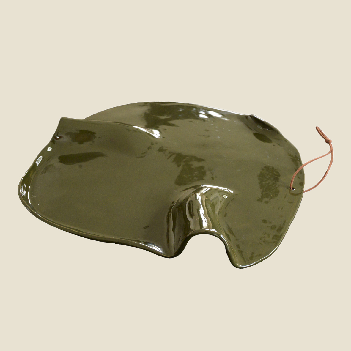 Plat de présentation de la collection « KAKI » pour l’apéritif, les tapas ou le fromage. Terre Faïence, émail uni kaki recto verso.