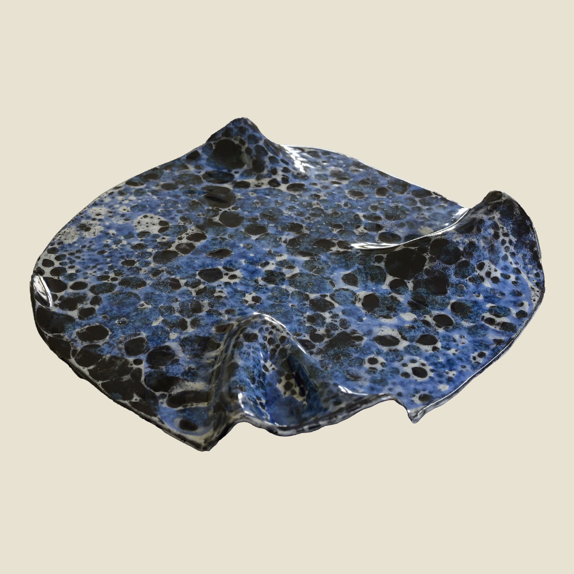 Plat de présentation de la collection « Écume » pour l’apéritif, les tapas ou le fromage. Émail noir / écume bleue et blanche. Produit alimentaire / Lave-vaisselle OK / Nous recommandons un lavage à la main afin de préserver l’émail. Micro-ondes OK – Dimensions : Largeur 33 cm / Longueur 34 cm / Hauteur 6 cm environ