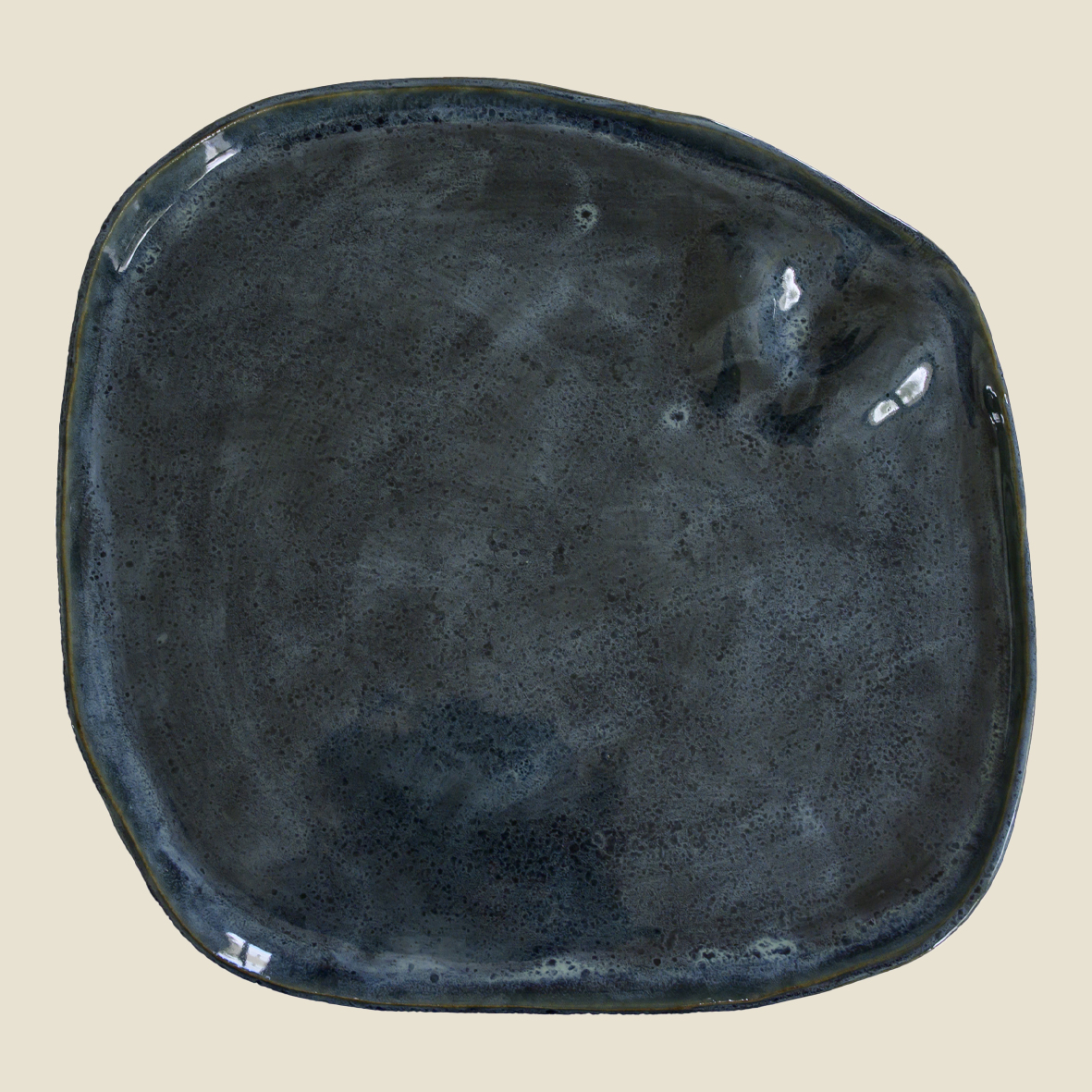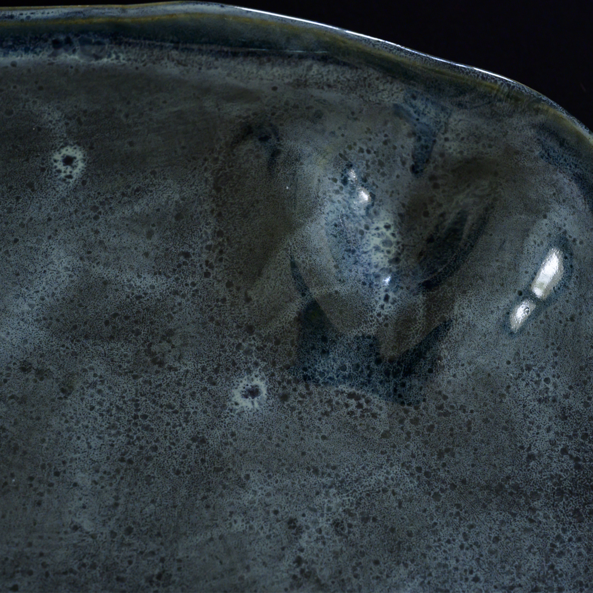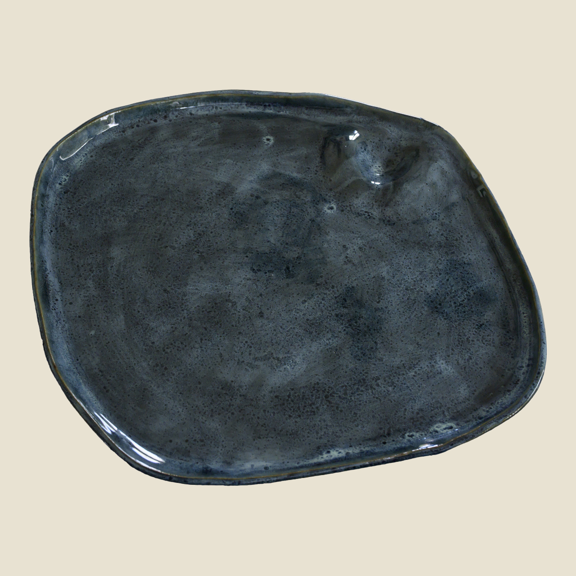 Plat de présentation de la collection « Écume » pour l’apéritif, les tapas ou le fromage. Émail bleu profond / écume bleue.