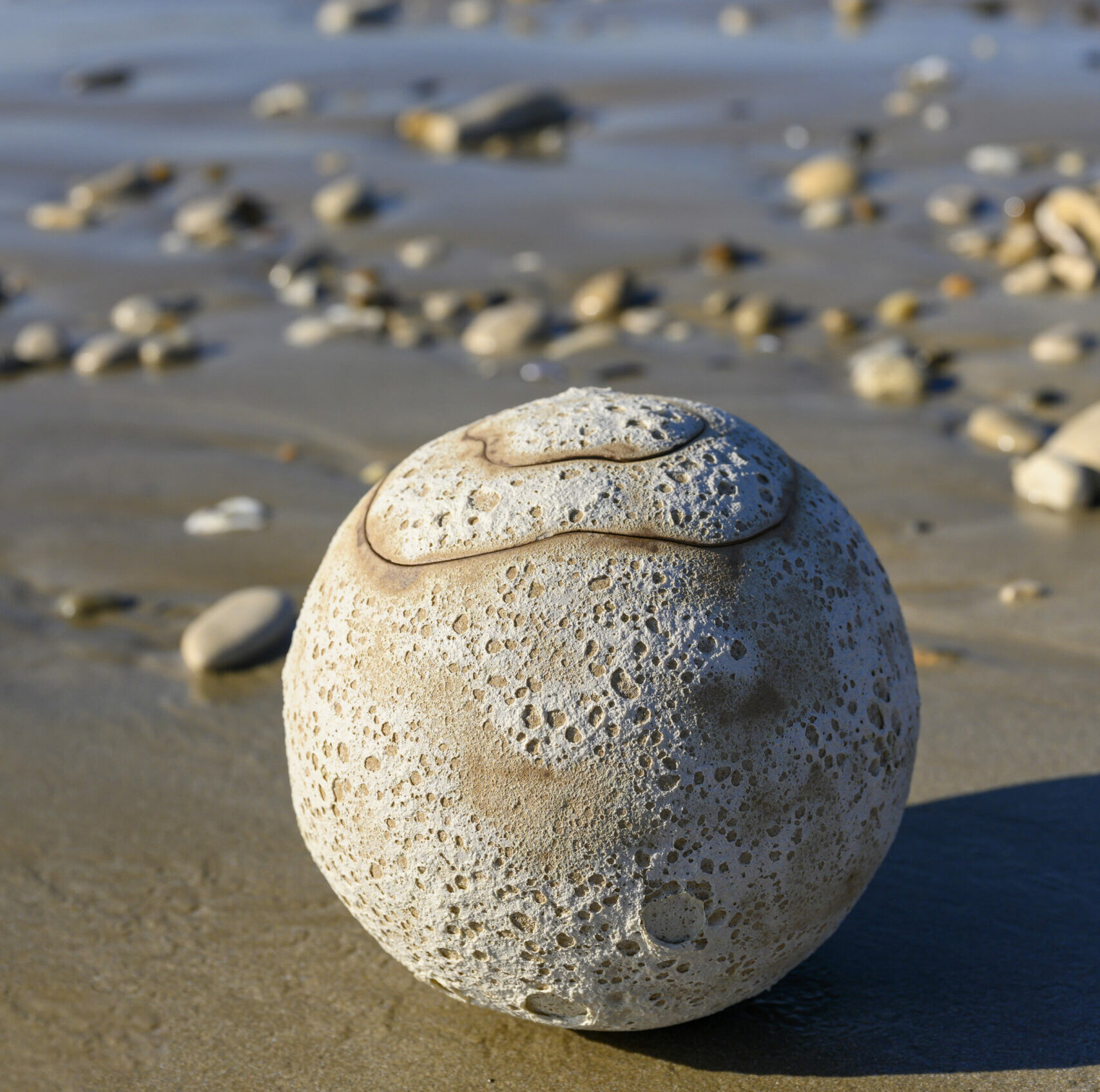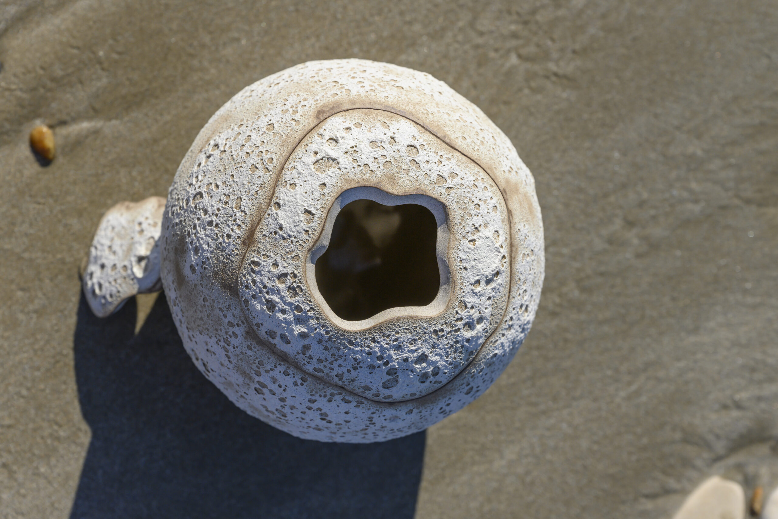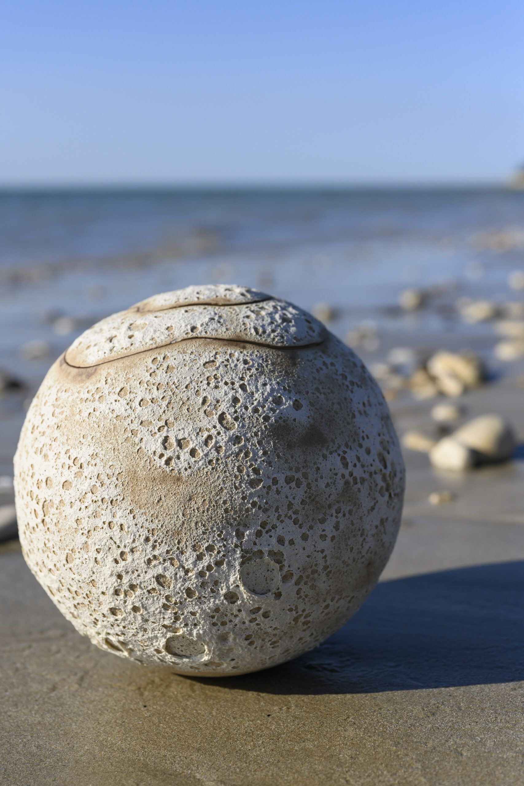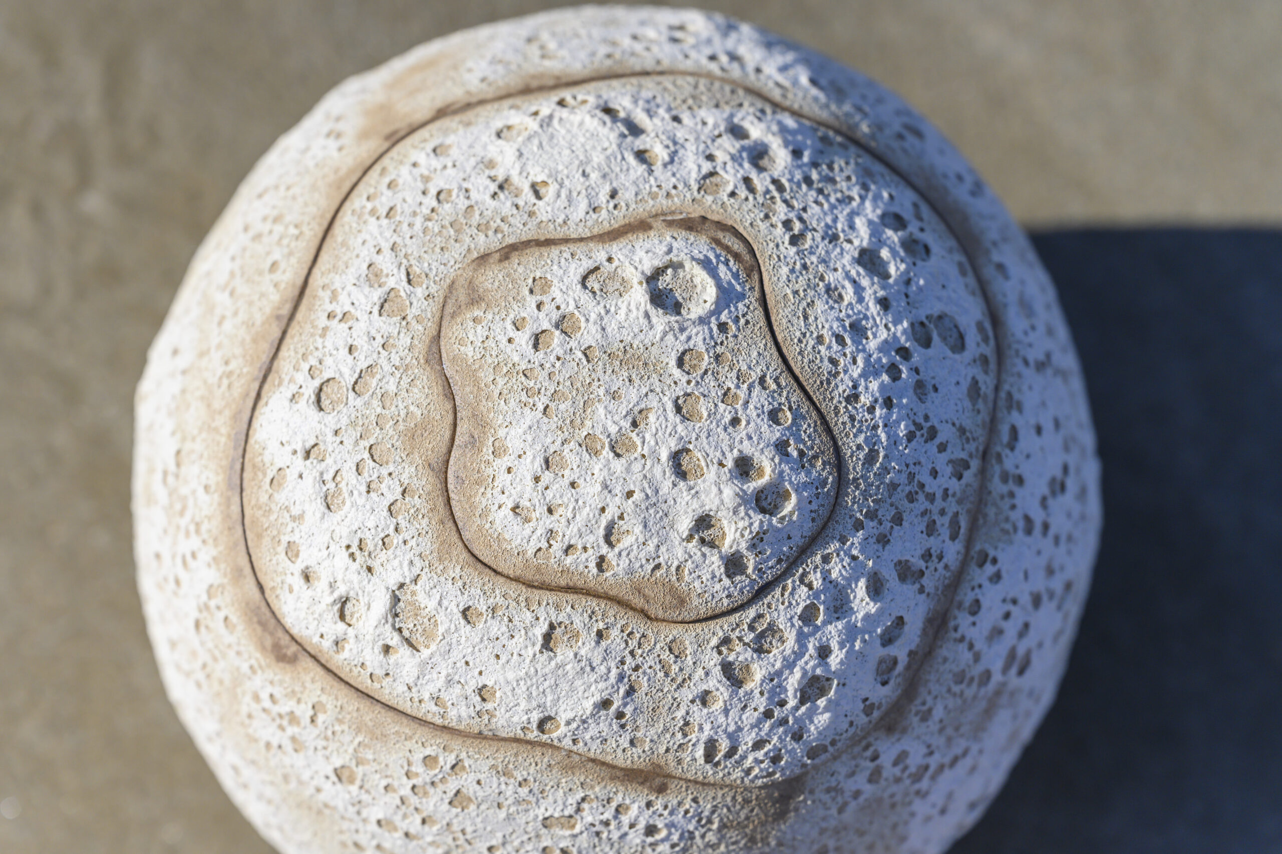 Matière : grès caramel – finition cratères beige / Diamètre de 20 cm